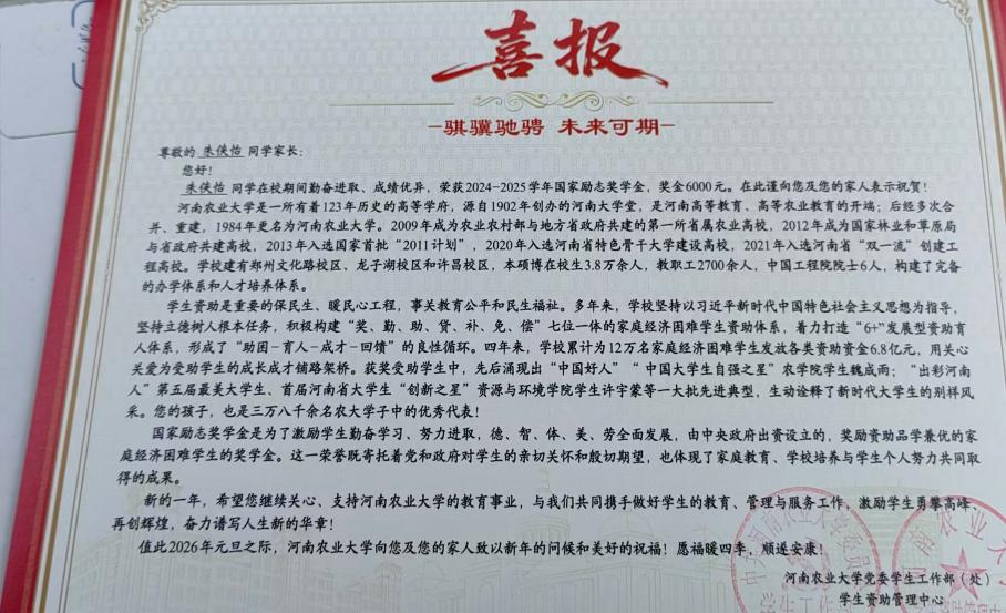 尚奕琳和王冰冰同学获得国家励志奖学金