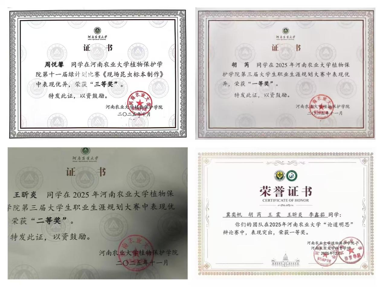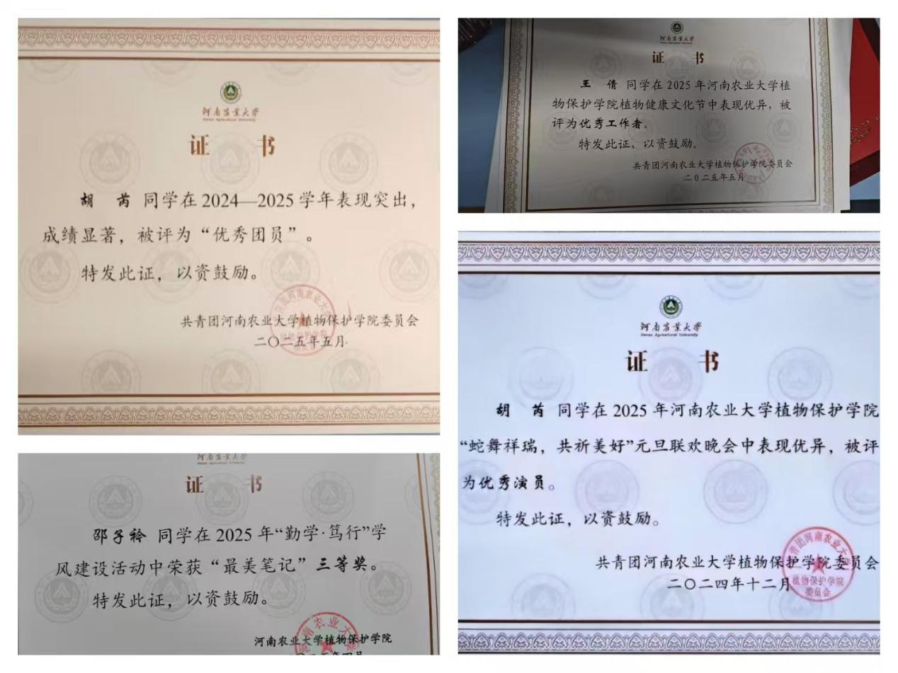 学院服务积极主动: 同学们主动投身学院建设与服务工作,为学院发展贡献力量,其中8人获得植物文化节优秀工作者证书,3人被评为“三好学生”,1人被评为优秀团员,用实际行动践行责任与担当。