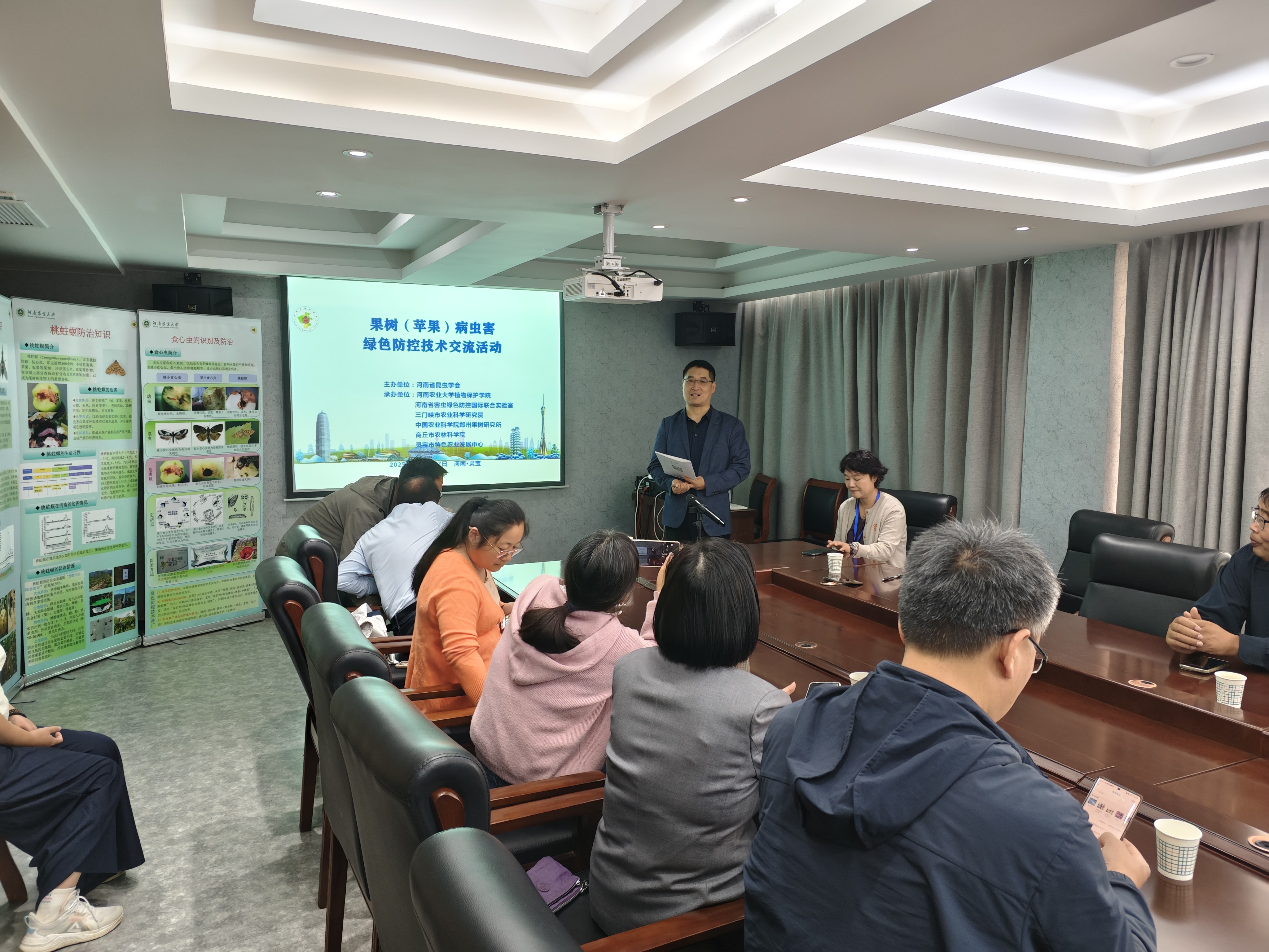 学术交流环节,我院教师展示了在果树病虫害绿色防控领域的研究成果。西北农林科技大学孙丽英教授、信阳农林学院周洲教授、我院魏纪珍副教授、姚双艳博士、刘艳敏博士、孙龙龙博士分别围绕果树病虫害的研究做了相关的报告,获得与会专家一致好评。
