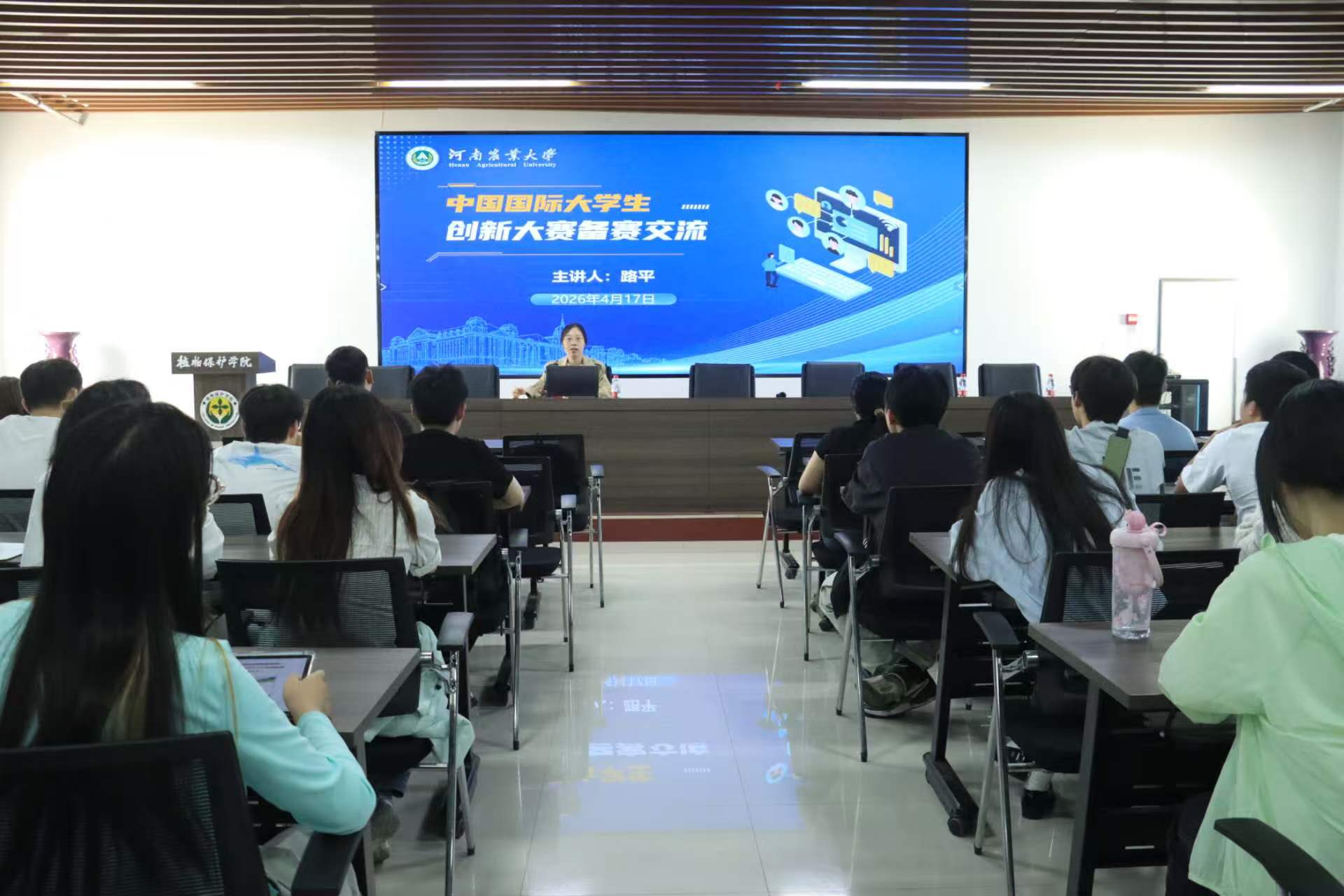 本网讯(通讯员 赵艺 图片 刘晓莹)近日,我院于龙子湖校区力行楼六楼会议室举办中国国际大学生创新大赛备赛宣讲会。会议邀请校招生就业办公室路平老师进行备赛宣讲,备赛的学生积极参加会议。会议由黄姗姗老师主持。
